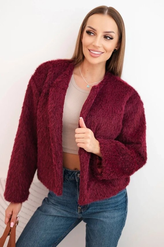 Kurtka damska futerkowa bez zapięcia bordowa