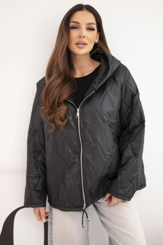 Kurtka damska wiosenna pikowana z kapturem i zamkiem czarna