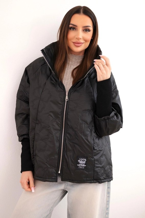 Kurtka damska wiosenna pikowana z ozdobnym tłoczeniem i zamkiem czarna