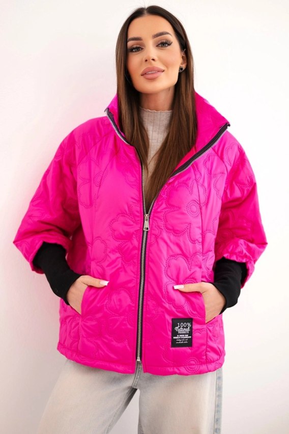 Kurtka damska wiosenna pikowana z ozdobnym tłoczeniem i zamkiem fuksja