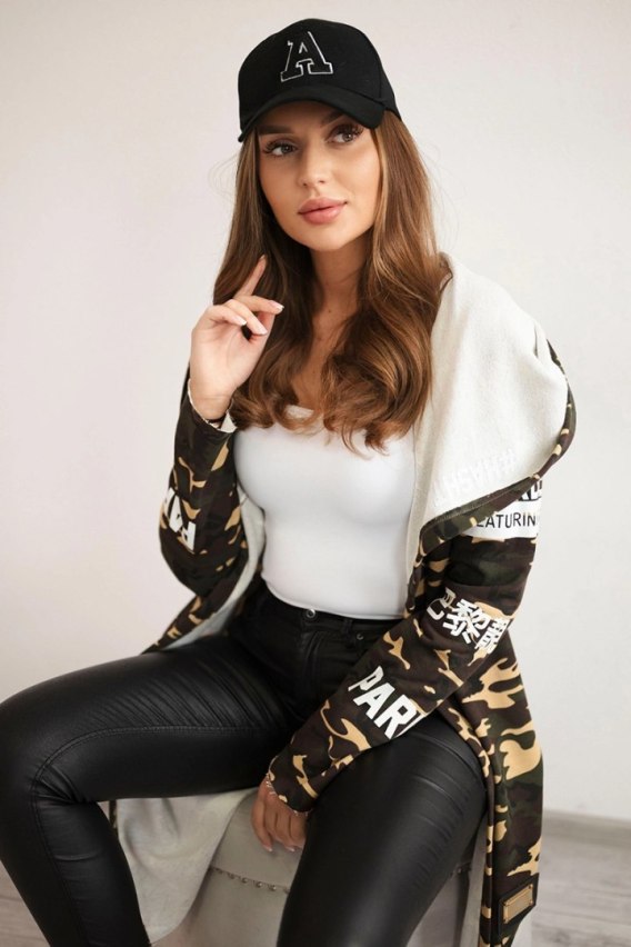 Narzutka z napisami khaki+beżowy