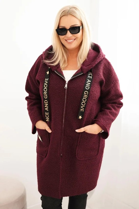 Przytulna bluza damska Plus Size o fasonie oversize to idealny wybór na chłodniejsze dni. Wykonana z miękkiego, ciepłego materiału o strukturze „baranka", zapewnia komfort noszenia i modny, swobodny look. Bluza posiada praktyczny kaptur z ozdobnymi trokami, duże kieszenie z przodu oraz zamek błyskawiczny ułatwiający zakładanie.