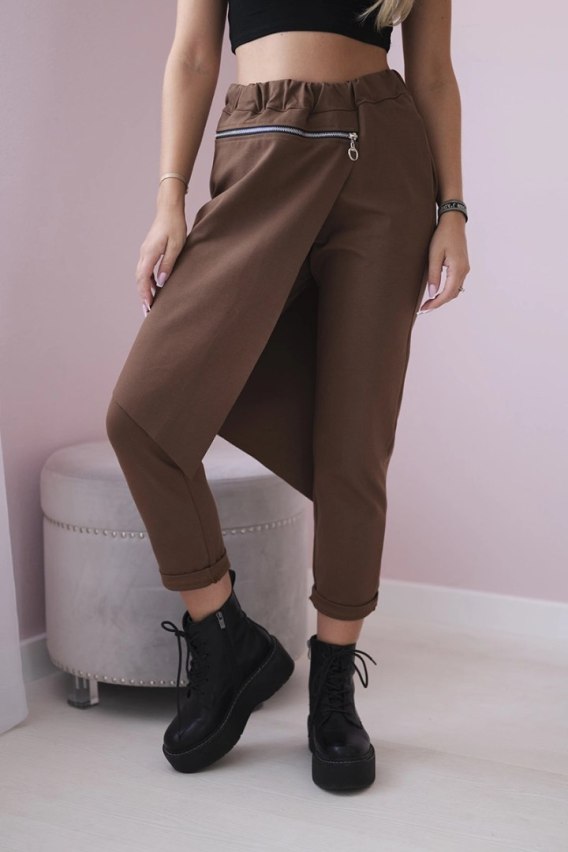 Spodnie Punto Milano Winter z ozdobnym suwakiem brązowe