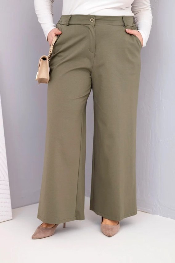 Spodnie damskie Plus Size z szeroką nogawką i wysokim stanem khaki