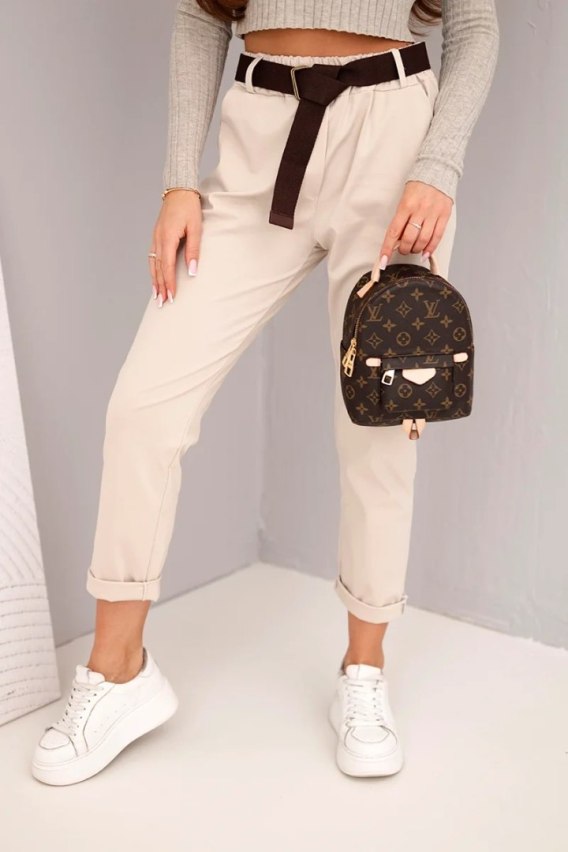 Spodnie damskie bawełniane z paskiem i podwijaną nogawką beżowe