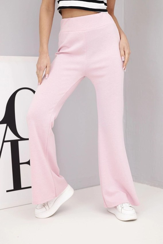 Spodnie damskie masełko z rozszerzaną nogawką jasno różowe