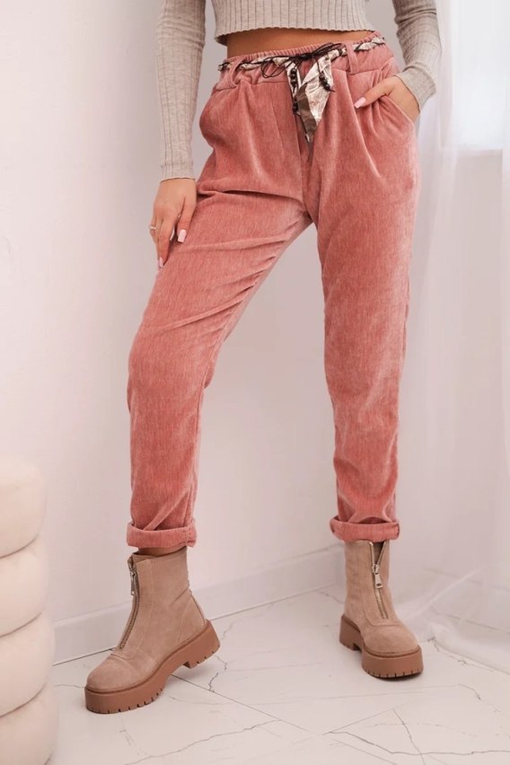 Spodnie damskie z wiskozy z apaszkowym paskiem ciemno różowe