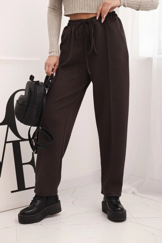 Spodnie damskie z wysokim stanem i wiązaniem w pasie brązowe