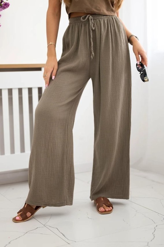 Odkryj wyjątkowe spodnie wykonane z delikatnego, przewiewnego muślinu, które zapewniają niespotykany komfort noszenia nawet w najcieplejsze dni. Ich szeroka nogawka nadaje całości modnego, nowoczesnego charakteru, optycznie wydłużając sylwetkę i dodając stylizacji lekkości. Idealne na co dzień, do pracy czy na wyjątkowe okazje - te spodnie doskonale komponują się z różnorodnymi topami, od minimalistycznych t-shirtów, przez eleganckie bluzki, aż po swetry. Postaw na klasyczny, ale jednocześnie wyrafinowany design, który pozwoli Ci cieszyć się zarówno komfortem, jak i niebanalnym stylem. Rozmiar jest uniwersalny i pasuje dla kobiet noszących rozmiar S, M lub L.