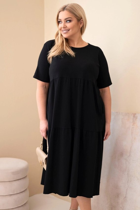 Sukienka damska bawełniana Plus Size z krótkim rękawem i falbaną czarna