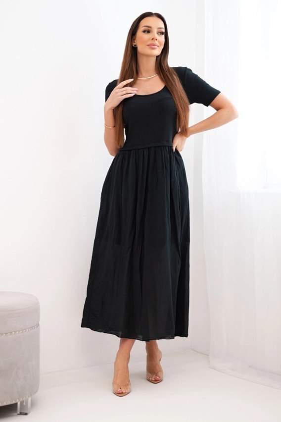 Sukienka damska bawełniana midi z krótkim rękawem i rozkloszowanym dołem czarna