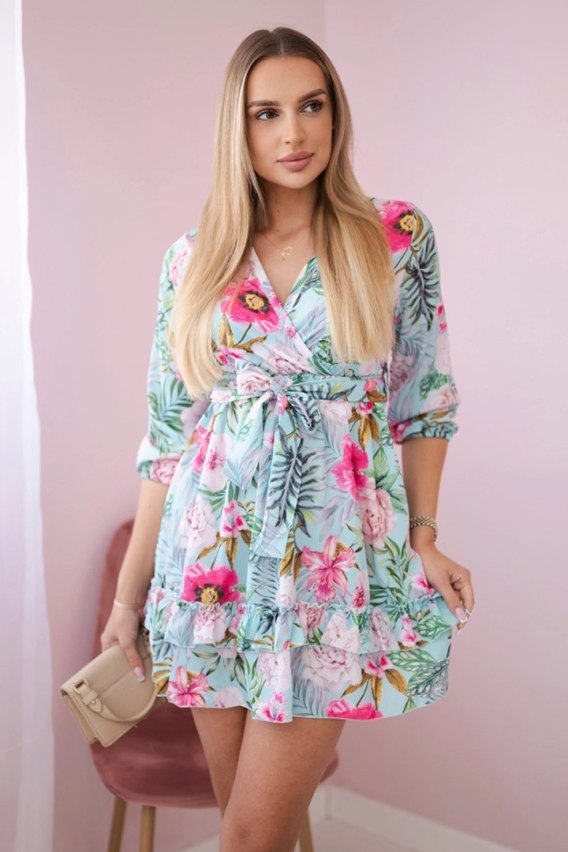 Prezentujemy Państwu wygodną sukienkę w kwiaty. Sukienka wiązana w pasie z dekoltem V. Bardzo modny krój. Sukienka wykonana jest z wysokiej jakości materiału. Rozmiar jest uniwersalny i będzie odpowiedni dla Pań noszących rozmiar S, M lub L.