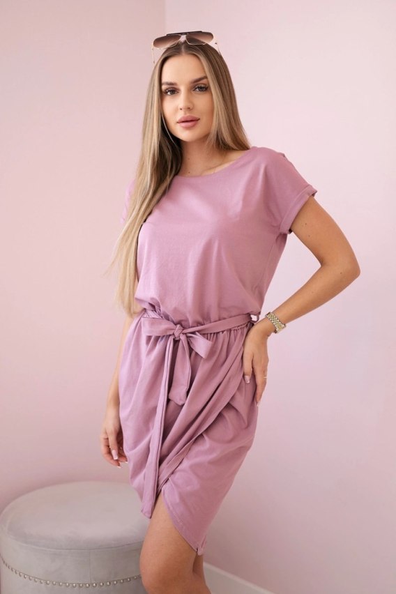 Sukienka wiązana z kopertowym dołem ciemno różowa