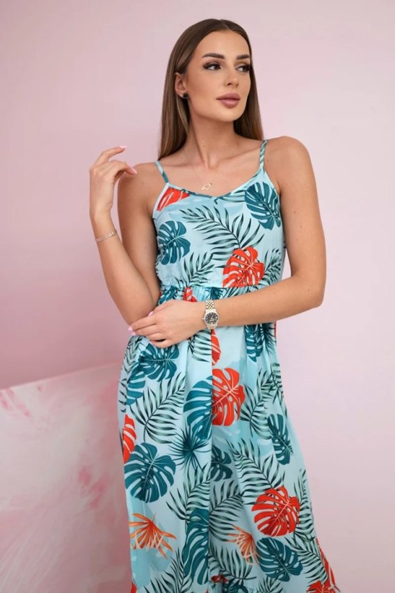 Sukienka z motywem liści miętowa