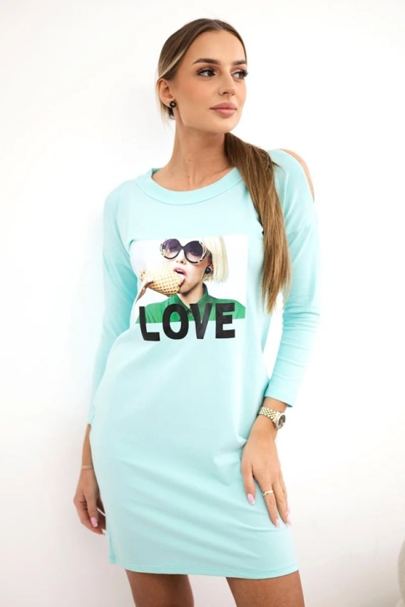 Sukienka z nadrukiem Love miętowa