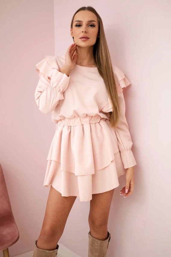 Sukienka z pionowymi falbanami jasny pudrowy róż