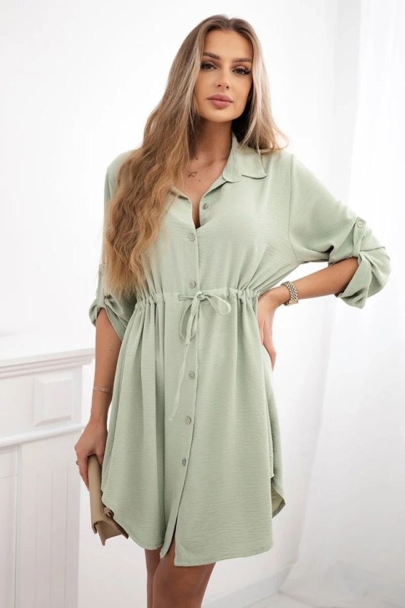 Sukienka z zapięciem na guziki i wiązaniem w talii ciemno miętowa