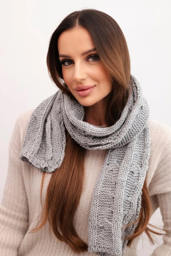 Szalik damski wełniany klasyczny z warkoczowym splotem KN22 szary